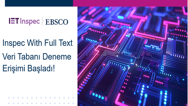 14 Ocak – 14 Şubat 2026 tarihleri arasında fizik, elektrik mühendisliği, elektronik, bilgisayar ve daha birçok alanda dünyanın bilimsel ve teknik literatürüne erişim sağlayan Institution of Engineering and Technology (IET) uzmanları ile işbirliği içinde üretilen Inspec With Full Text veri tabanı deneme erişimimize açılmıştır.