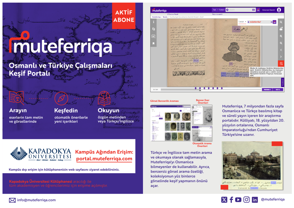 7 milyon sayfalık içerik ve 660.000 görsel ile daha verimli araştırma imkanı sunan Osmanlı Türkçesi keşif portalı Muteferriqa,  2026-2028 yılları arasında EKUAL kapsamında tüm araştırmacıların erişimine açılmıştır.